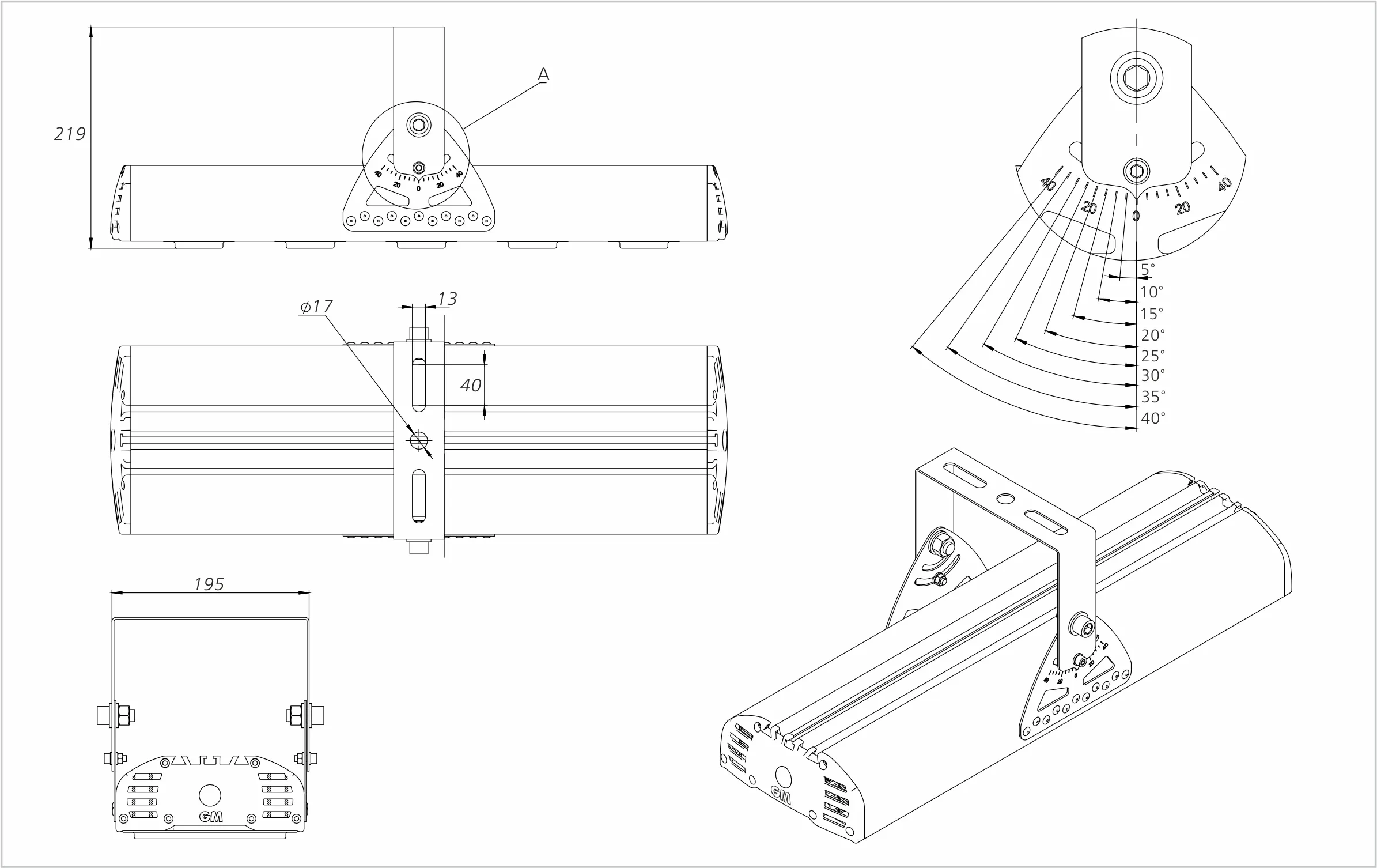 Прочный поворотный кронштейн позволяет выбирать направление светового потока и подстраивать параметры освещения